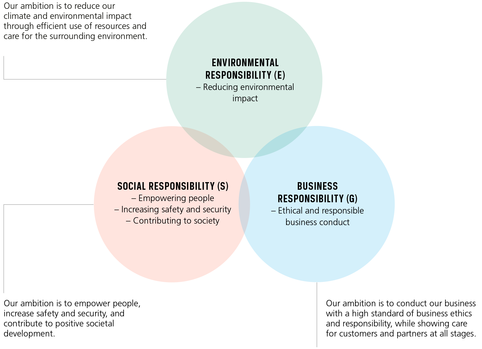 The Group’s sustainability work is decentralised to the business units but is based on a common vision – Care in everything we do. This guides how the business is conducted and forms the foundation for long-term, responsible value creation.